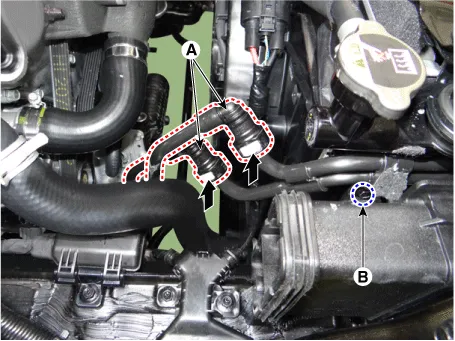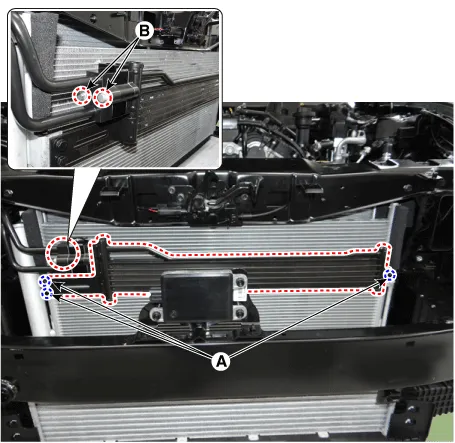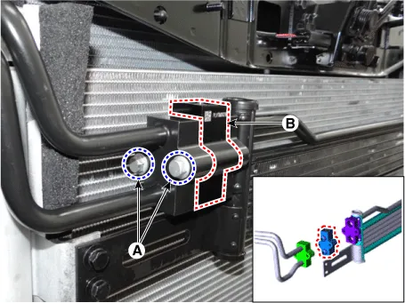 Separat the oil cooler tube (A)and loosen the bolt (B).