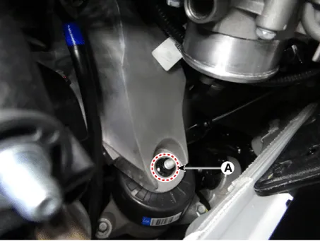 Remove the engine room front under cover and LH side cover. (Refer to Engine and Transmission Assembly - "Engine Room Under Cover") |