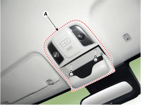 Remove the two mounting screws. And then remove the overhead console lamp (A).
