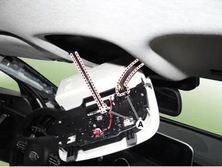 Remove the overhead console lamp after disconnecting the connectors (A).