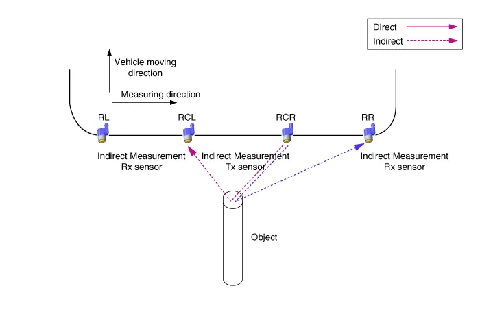 PDW consists of 8 sensors (4 in the front and 4 in the rear) that are used to detect obstacles and transmit the result in three separate warning levels, the first, second and third to IPM (IBU) via LIN communication. IPM (IBU) decides the alarm level by the transmitted communication message from the slave sensors, then operates the buzzer or transmits the data for display.