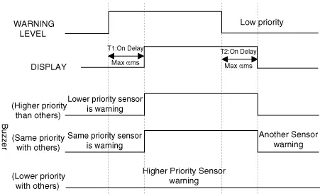Condition logic according to priority of alarm level is as below. (the identical sensor)