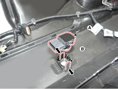Pull out ths PDW-R sensor (A) after opening the sensor holder (B). [A Type]