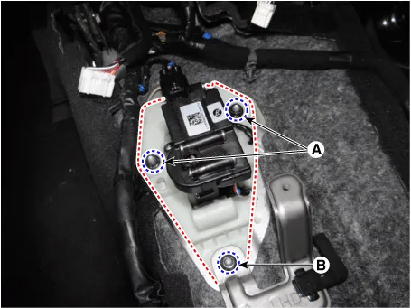 Loosen the parking release actuator mounting nuts (A, B).