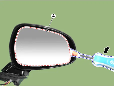 Remove the mirror actuator (A) by using flat-bladed screwdriver or remover after loosening the screw.