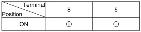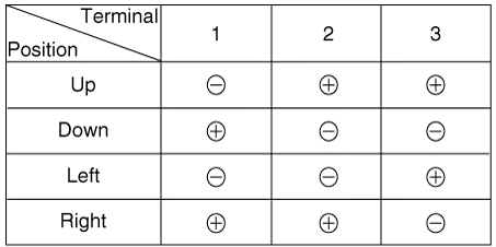 Apply battery voltage to each terminal as shown in the table and verify that the mirror operates properly. [Mirror Control (LH/RT)]