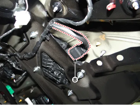 Disconnect the power tailgate latch connector (A) and power closing unit connector (B).