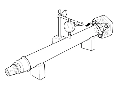 Install a dial indicator with its needle on the center of front propeller shaft or rear propeller shaft. |