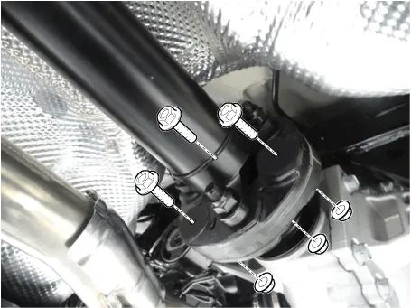 Remove the front muffler. D 2.2 R VGT (Refer to Engine Mechanical System - "Muffler") G 2.0 T-GDI THETA II (Refer to Engine Mechanical System - "Muffler") G 3.3 T-GDI LAMBDA II (Refer to Engine Mechanical System - "Muffler") |
