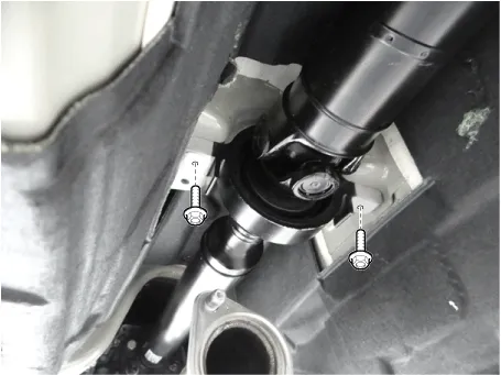 Loosen the rear propeller shaft bolts and then remove the propeller shaft.