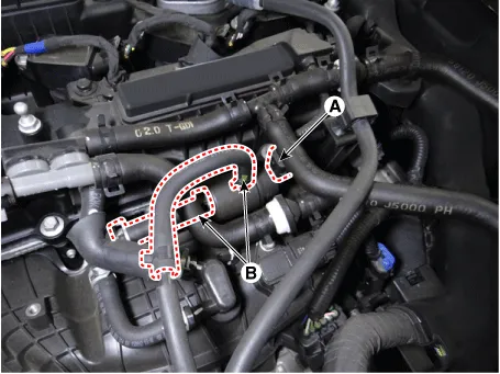 Disconnect the vapor hoses (B) from the purge control solenoid valve.