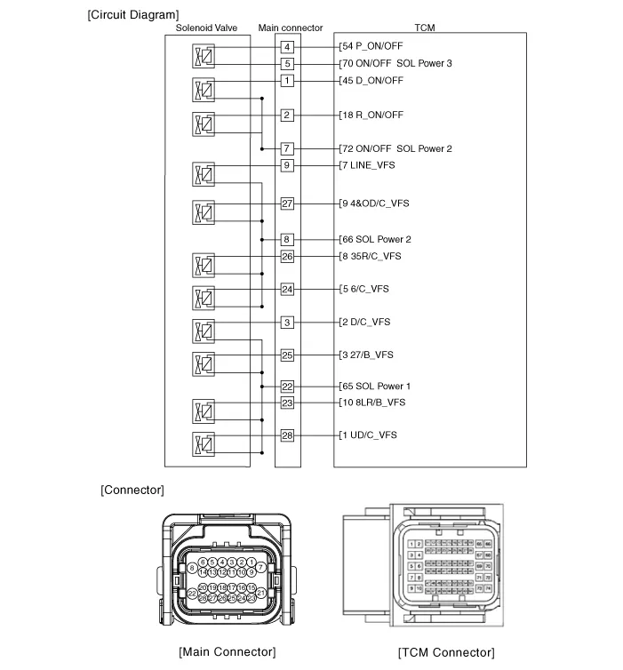 When TCM supplies current to solenoid valve, the solenoid valve operates and controls the R range. |