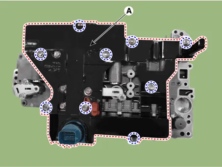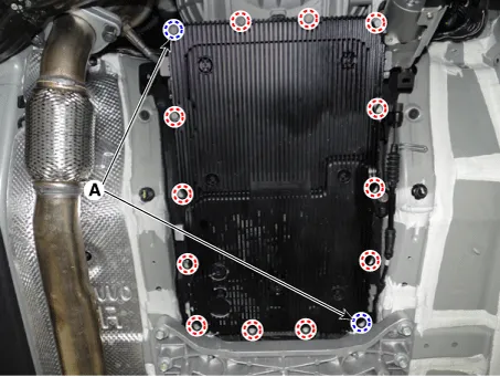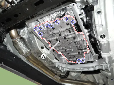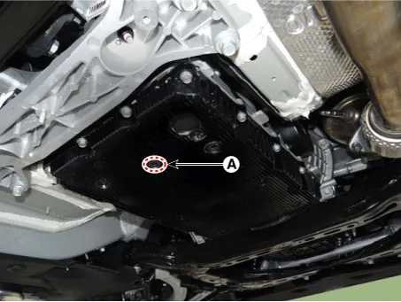 Remove the ATF drain plug (A), allow the fluid to drain out and then reinstall the drain plug.
