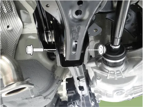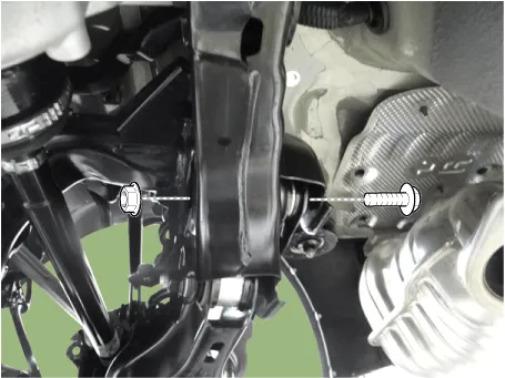 Loosen the rear lower arm bolt & nut and then separate the lower arm from the rear axle.