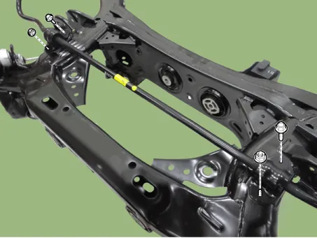 Loosen the rear cross member nuts & bolts and then remove the rear cross member.