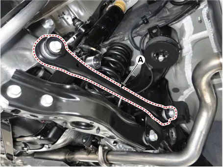 Loosen the rear upper arm rear bolt & nut (A) and then separate the rear upper arm rear.