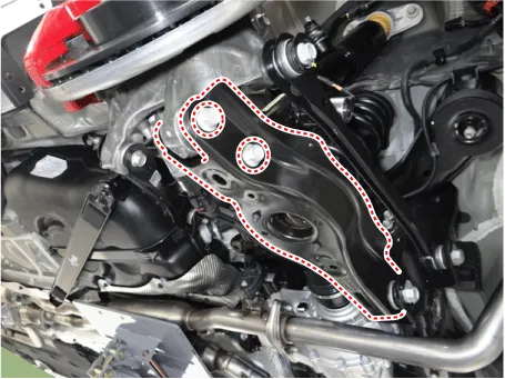 Loosen the rear upper arm front nut & bolt and then remove the rear upper arm front from the rear cross member.