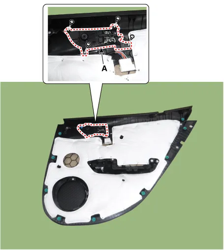 Rremove the rear door inside handle (A) after loosening mounting screws.