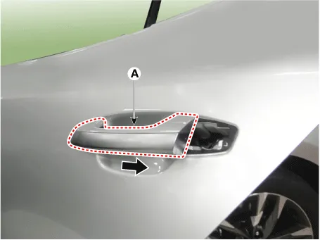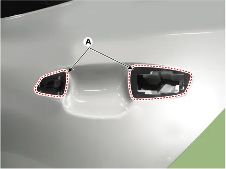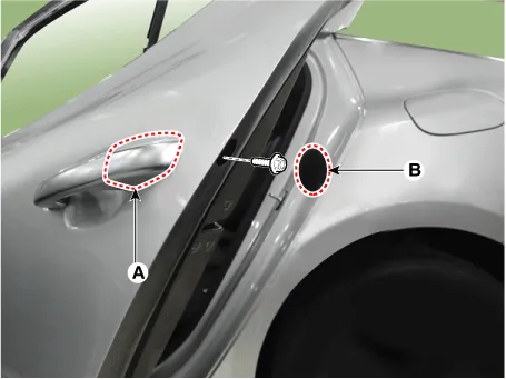 Remove the hole cap (B) and then remove the rear door outside handle cover (A) after loosening the mounting bolt.