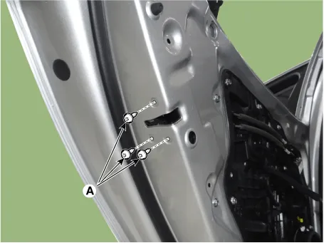 Remove the rear door window glass. (Refer to Rear Door - "Rear Door Window Glass") |