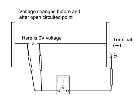 To check for open circuits, Slowly move the test lead toward the section where open circuits seem to exist. Try to find a point where the voltage turns to 0V. The point where the voltage has changed is the open-circuit point.