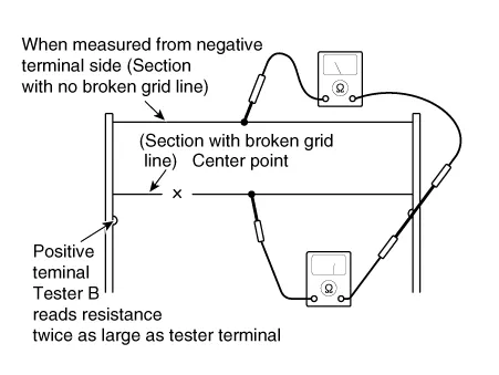 Use an ohmmeter to measure the resistance of each heater line between a terminal and the center of a grid line, and between the same terminal and the center of one adjacent heater line. The section with a broken heater line will have a resistance twice that in other sections. In the affected section, move the test lead to a position where the resistance sharply changes.