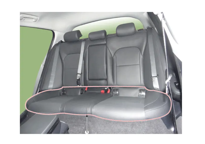 | 1. Rear seat cushion pad 2. Rear seat cushion heater 3. Rear seat cushion covering 4. Rear seat back covering 5. Rear seat back pad 6. Rear seat back frame back panel 7. Rear seat back folding knob [LH] 8. Rear seat back folding knob cover [LH] |