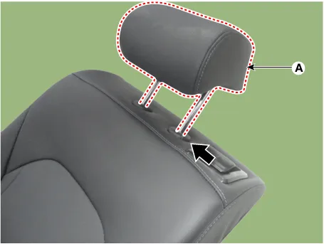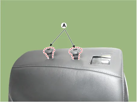 Pull out and remove the rear seat headrest guides (A) while holding both sides of the lower part of the guides.