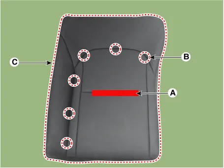 Remove the front seat back covering (C) after removing the velcro tape (A) and hog-ring clip (B).