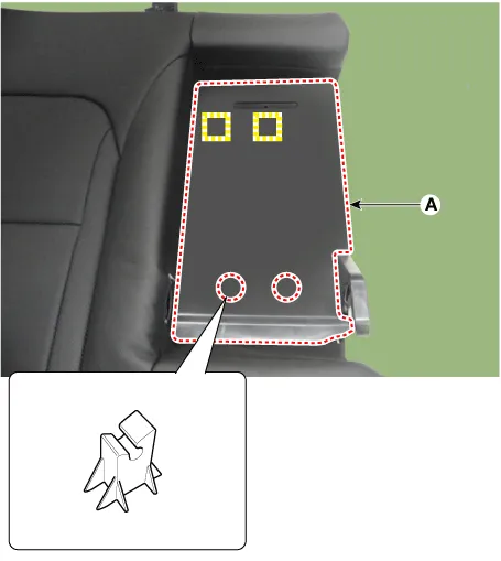 Remove the rear seat back folding knob cover (A) by using a remover.