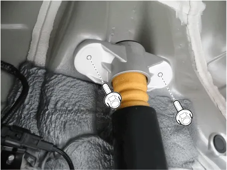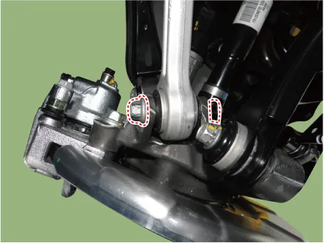 Loosen the rear shock absorber upper bolts and the remove the rear shock absorber.