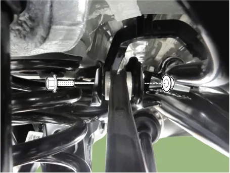 Loosen the rear upper arm front nut & bolt and then remove the rear upper arm front from the rear cross member.