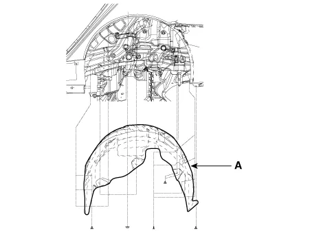 After loosening the mounting clips and screws, remove the rear wheel guard (A).