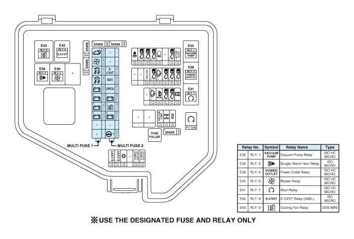 After disconnecting power between No. 85 and 86 power relay terminals, check that there is no continuity between No. 30 and 87 terminals. Engine Room Relay Block