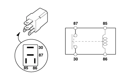 After disconnecting power between No. 85 and 86 power relay terminals, check that there is no continuity between No. 30 and 87 terminals.