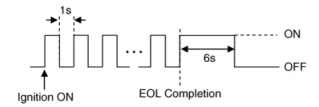 After ignition on, telltale lamp will turn on for 4 seconds and turn off for 3 seconds during the initialization phase and be turned ON afterward until receipt of valid enabled message from ODS system.