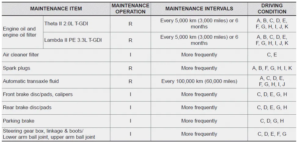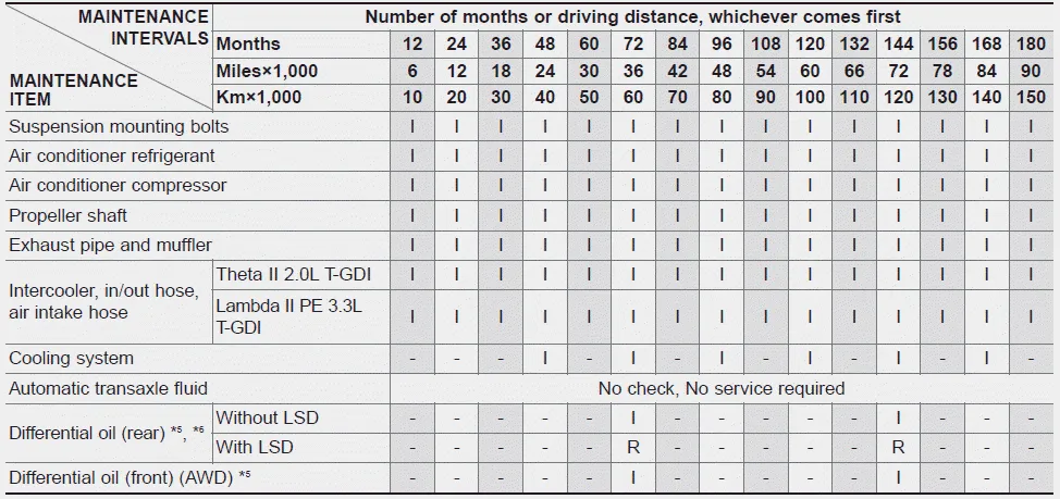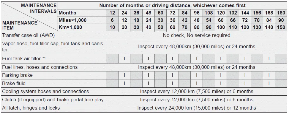 If your vehicle is operated under the above conditions, you should inspect, replace or refill more frequently than the following Normal Maintenance Schedule. After 120 months or 150,000 miles continue to follow the prescribed maintenance intervals.