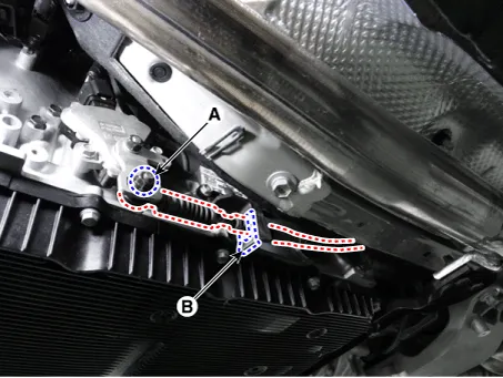 Loosen the nut (A) and remove the shift cable fixing clip (B).