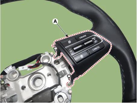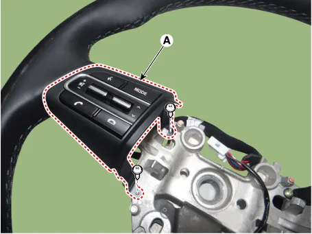 Remove the steering wheel remote control (A) after loosening the mounting screws. [LH]