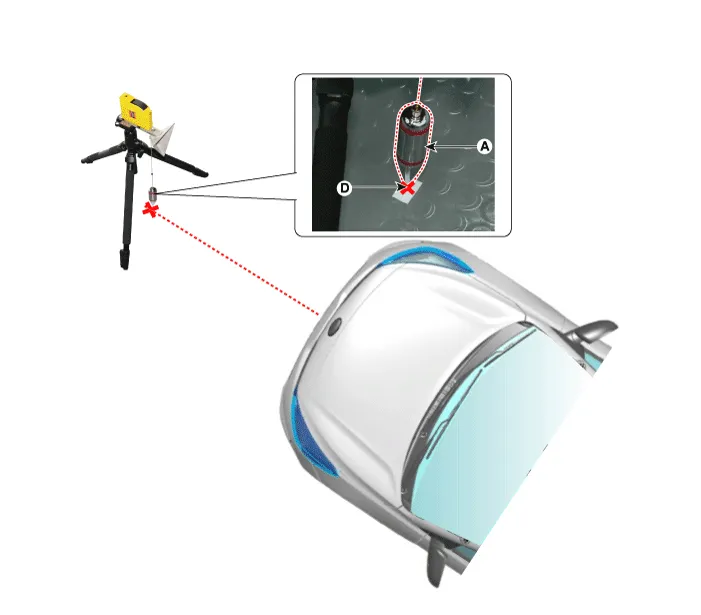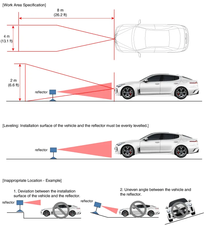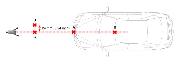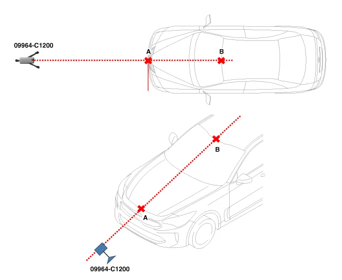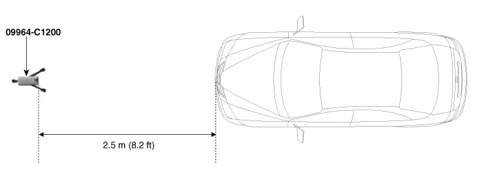 Place the laser (09964-C1200) at 2.5m (8.2 ft) to the front of the vehicle.