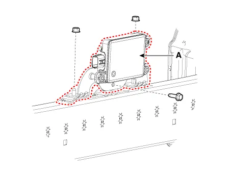 Install the front radar (A) by tightening the nuts.