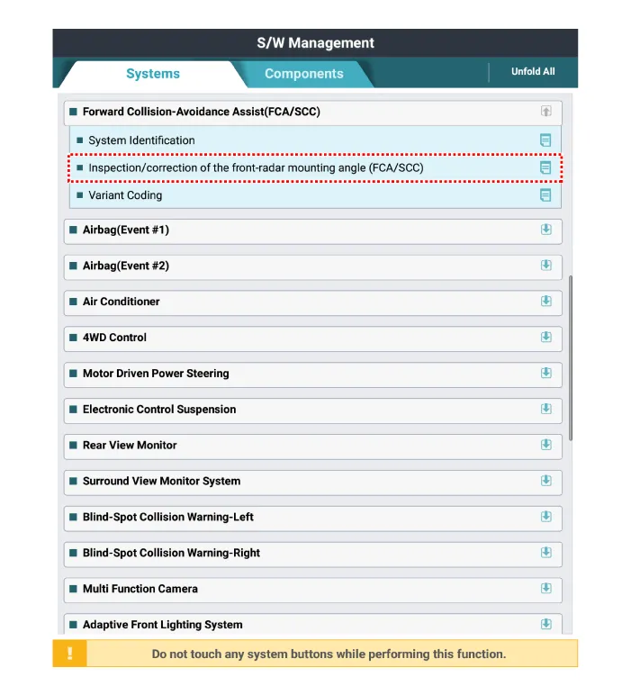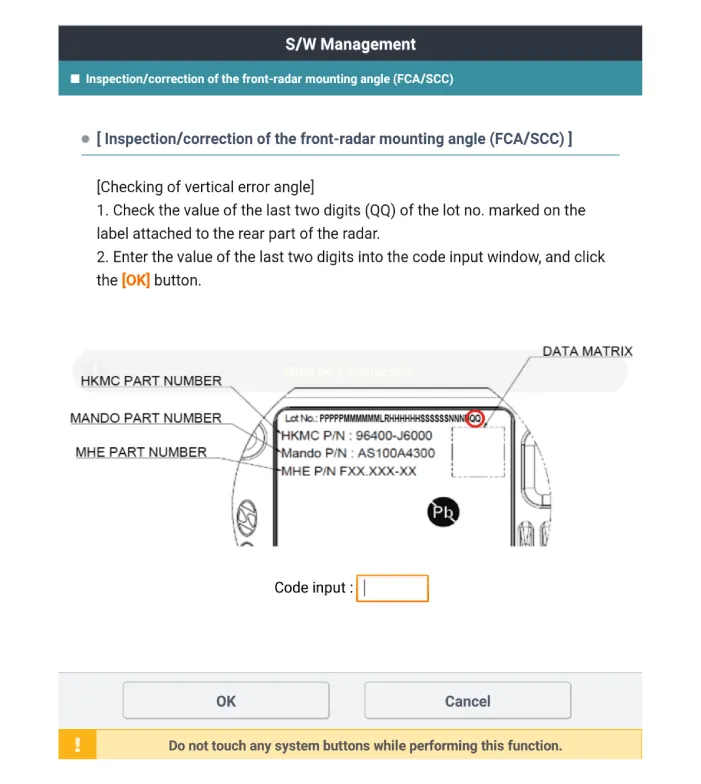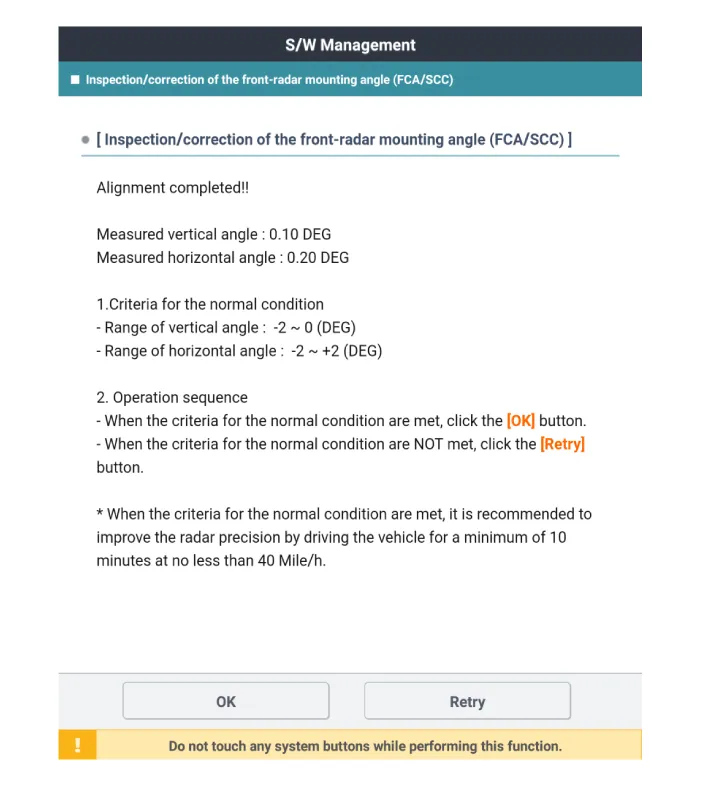 Perform the “inspection/correction of the front-radar mounting
