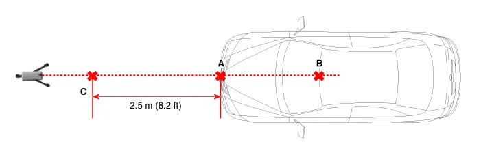 Mark (C) at 2.5m (8.2 ft) from (A) in front of the vehicle.