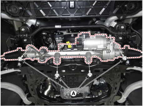 Disconnect the R-MDPS wiring clip (A) from the sub frame.