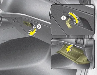 To open the glove box, pull the lever (2) and the glove box will automatically