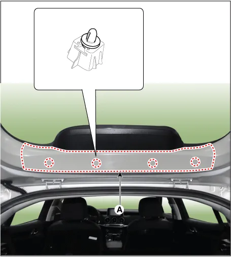 Remove the smart tailgate inner switch after disconnecting the connector (A).