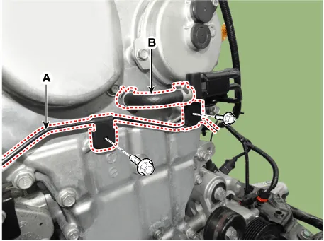 Remove the vacuum pipe (A) and then disconnect the air vent lower hose (B).