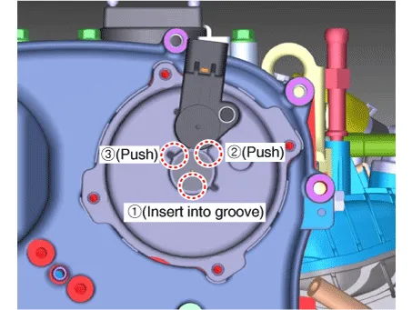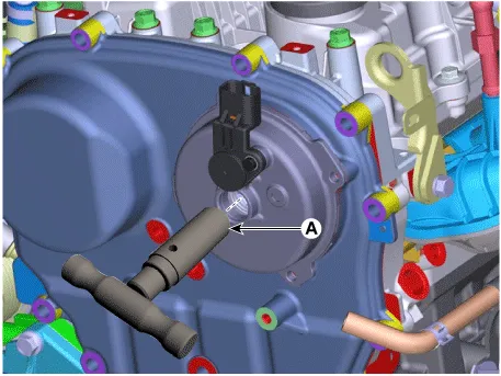 Insert the E-CVVT cover plug so that the protrusion (A) reach to E-CVVT cover groove correctly.