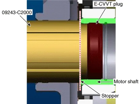 Check if the oil flows inside the E-CVVT cover. If the oil flows inside the E-CVVT cover, replace the E-CVVT cover. |