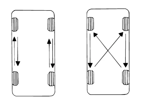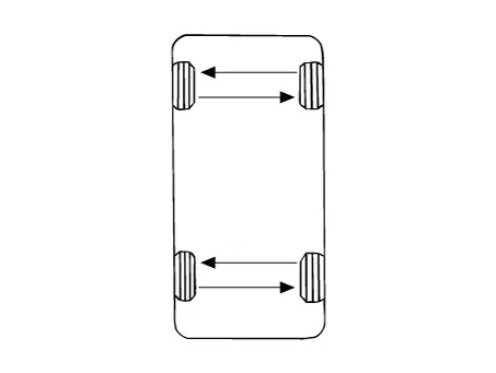 If the steering pulls to one side, rotate the tires according to the following wheel rotation procedure.